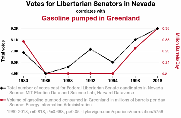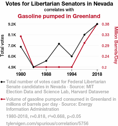 - The spurious research paper: Libertarian Votes in Nevada and Gasoline Rates in Greenland: A Rhyming Correlation Study