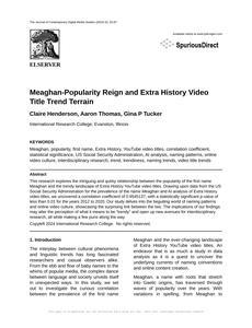 Meaghan-Popularity Reign and Extra History Video Title Trend Terrain The Journal of Contemporary Digital Media Studies Jan 2024 Reminder: This paper is AI-generated. Not real! |