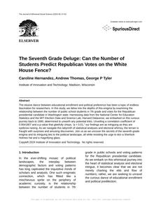 The Seventh Grade Deluge: Can the Number of Students Predict Republican Votes on the White House Fence? The Journal of Whimsical Social Science Jan 2024 Reminder: This paper is AI-generated. Not real! |