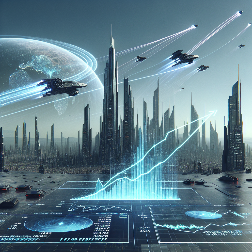 Prompt: An image that looks like it is a scene from 'Star Wars' and depicting this scene: In the scene, a futuristic cityscape is depicted with towering skyscrapers and sleek hovering vehicles streaming through the air. In the foreground, a graph on the left shows a sharp increase in total views on SmarterEveryDay YouTube videos, while on the right, a separate graph displays Warner Bros. Discovery's stock price (WBD) soaring in tandem with the viewership graph. Both graphs are illuminated with holographic projections, creating a mesmerizing visual representation of the surge in intellectual engagement and its impact on economic value. The depiction should include only scenes, people, and objects, it should not include text or speech bubbles.