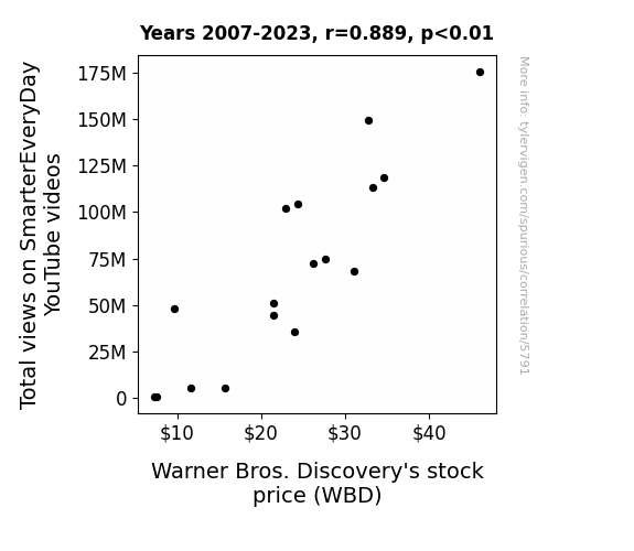 This paper presents an unconventional analysis of the relationship between the total views on the popular YouTube channel SmarterEveryDay and the stock price of Warner Bros. Discovery (WBD). Leveraging a combination of data from YouTube and LSEG Analytics (Refinitiv), our research team scrutinized the correlation between these seemingly disparate entities. Our findings revealed a correlation coefficient of 0.8885821 and a statistically significant p-value of less than 0.01 during the period from 2007 to 2023. While unexpected at first glance, the robust correlation prompted a deeper dive into the possible interplay between digital content consumption and the financial performance of media conglomerates. This study sheds light on the potential impact of online viewership trends on market valuation and offers a quirky twist to the age-old debate surrounding the dynamics of modern-day entertainment and investment.