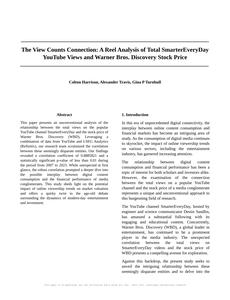 User prompt: Please provide potential search keywords for a paper titled The View Counts Connection: A Reel Analysis of Total SmarterEveryDay YouTube Views and Warner Bros. Discovery Stock Price with an abstract of This paper presents an unconventional analysis of the relationship between the total views on the popular YouTube channel SmarterEveryDay and the stock price of Warner Bros. Discovery (WBD). Leveraging a combination of data from YouTube and LSEG Analytics (Refinitiv), our research team scrutinized the correlation between these seemingly disparate entities. Our findings revealed a correlation coefficient of 0.8885821 and a statistically significant p-value of less than 0.01 during the period from 2007 to 2023. While unexpected at first glance, the robust correlation prompted a deeper dive into the possible interplay between digital content consumption and the financial performance of media conglomerates. This study sheds light on the potential impact of online viewership trends on market valuation and offers a quirky twist to the age-old debate surrounding the dynamics of modern-day entertainment and investment.