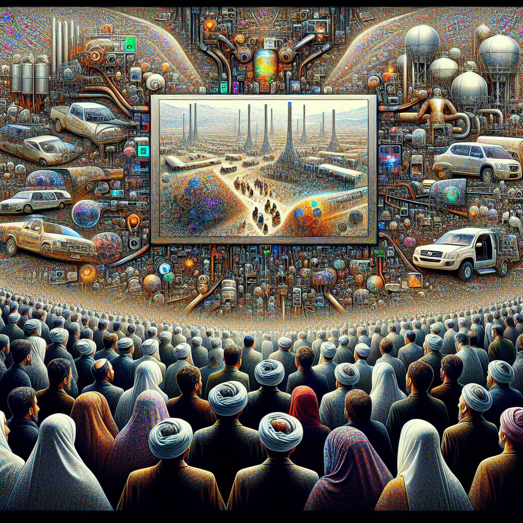Prompt: Generating prompt... Title: "Mathematical Marvels in Turkmenistan" Description: Using the style of a Discovery magazine cover image, depict citizens of Turkmenistan gathered around a screen displaying mesmerizing 3Blue1Brown YouTube video titles. Their eyes widen in fascination as they watch complex mathematical concepts unfold, requiring extra brainpower to comprehend. Show the scene transitioning seamlessly to citizens being inspired by the videos and investing in more petroleum-based products like cars and generators, fueling their newly inspired productivity. Capture the combination of awe-inspiring mathematical visuals and the hum of petroleum-powered machinery, reflecting the impact of both variables. Keep the visual depiction simple without any words or speech bubbles. The depiction should include only scenes, people, and objects, it should not include text or speech bubbles.