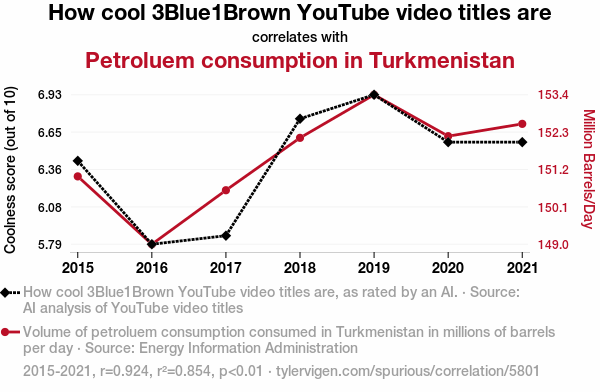 - The spurious research paper: From Calc to Crude: A Correlation Between 3Blue1Brown Video Titles and Petroleum Consumption in Turkmenistan