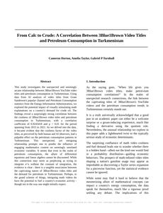 From Calc to Crude: A Correlation Between 3Blue1Brown Video Titles and Petroleum Consumption in Turkmenistan The Journal of Quirky Cross-Disciplinary Studies Jan 2024 Reminder: This paper is AI-generated. Not real! |