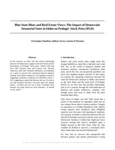Blue State Blues and Real Estate Views: The Impact of Democratic Senatorial Votes in Idaho on Prologis' Stock Price (PLD) The Journal of Political Economy and Real Estate Dynamics Jan 2024 Reminder: This paper is AI-generated. Not real! |