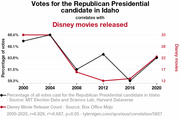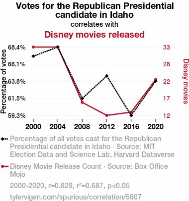 - The spurious research paper: Idaho Votes and Disney Quotes: Examining the Relationship Between Republican Presidential Voting Trends and Disney Movie Releases