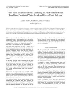 Idaho Votes and Disney Quotes: Examining the Relationship Between Republican Presidential Voting Trends and Disney Movie Releases The Journal of Political Cartoons and Pop Culture Analysis Jan 2024 Reminder: This paper is AI-generated. Not real! |