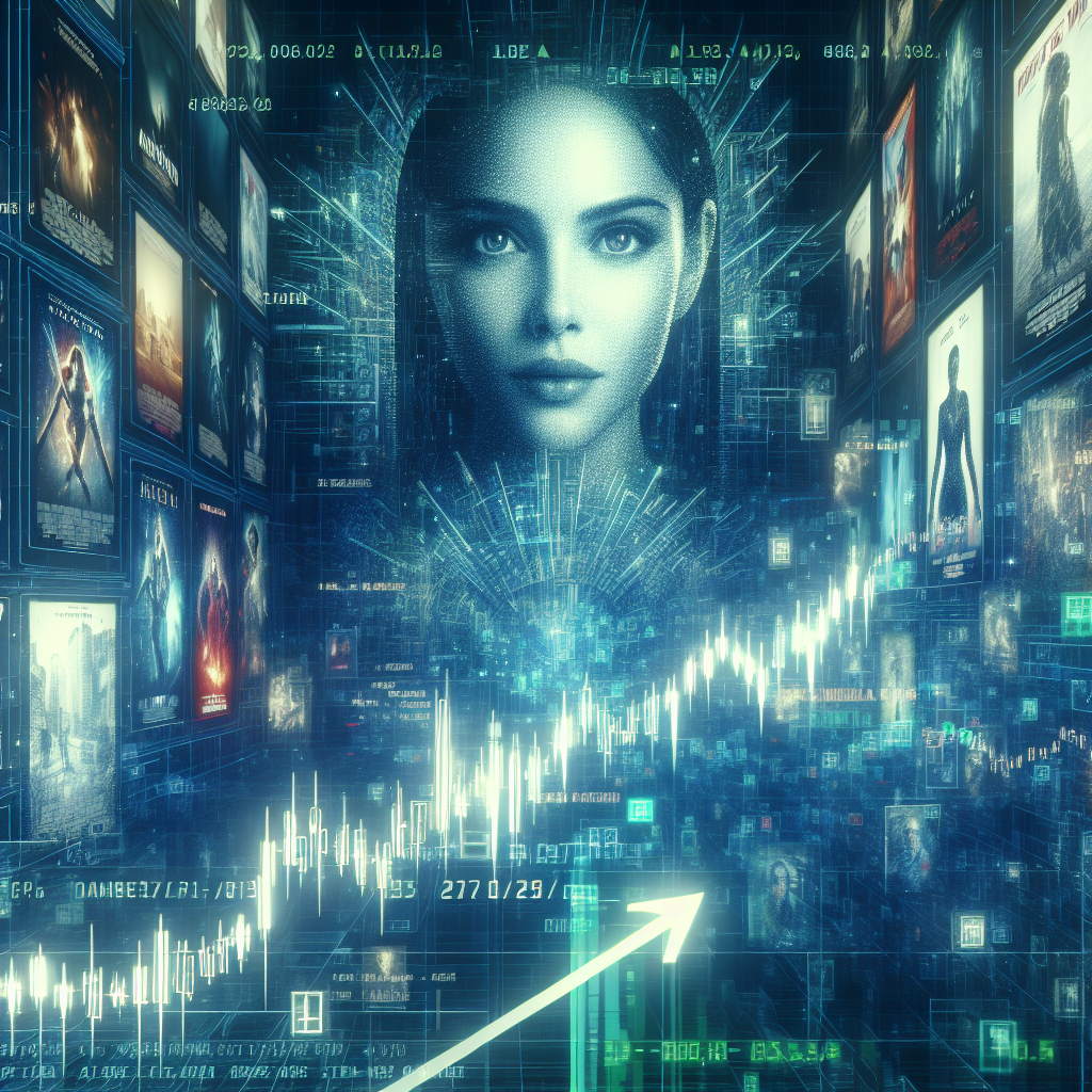 User prompt: Please describe a visual scene that prominently depicts both The number of movies Mila Kunis appeared in and POSCO Holdings' stock price (PKX), in the following situation: As Kunis's filmography expanded, so did the appeal of POSCO's holdings, leading to a Kutis-effect on the stock price. It seems her performances weren't just box office hits, but also stock exchange sensations. Perhaps her stellar acting was the real steel driving force behind POSCO's market success, proving that in the world of finance, she truly is the Kunis-essential asset.. Keep the description simple.