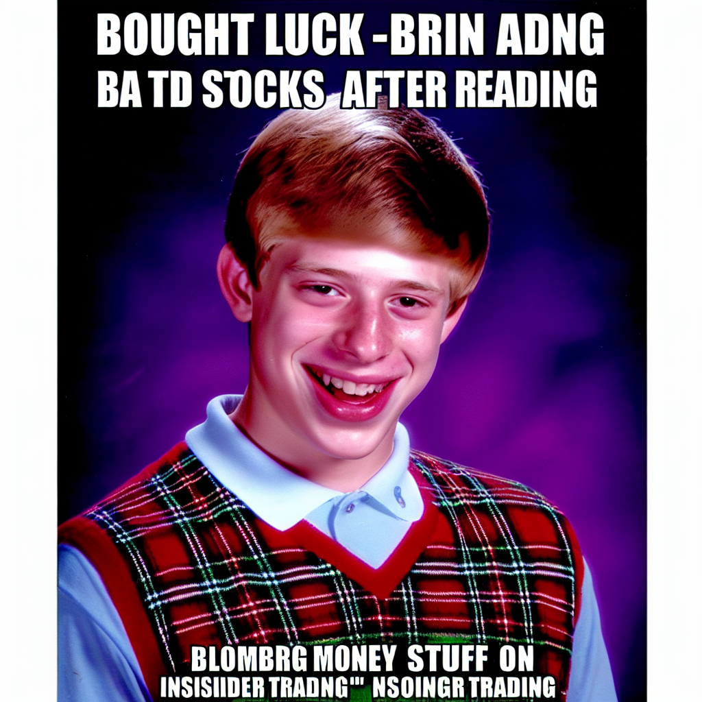 Create a meme inspired by the bad luck brian meme that in some way references Bloomberg Money Stuff articles about insider trading. Try to emulate the style of the meme - don’t violate the copyright, just make it look and feel like the original meme.