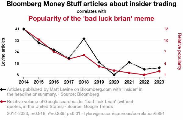 Bloomberg Money Stuff, insider trading, bad luck brian meme, correlation, Google Trends, financial information dissemination, internet humor, popular culture, high finance, digital age