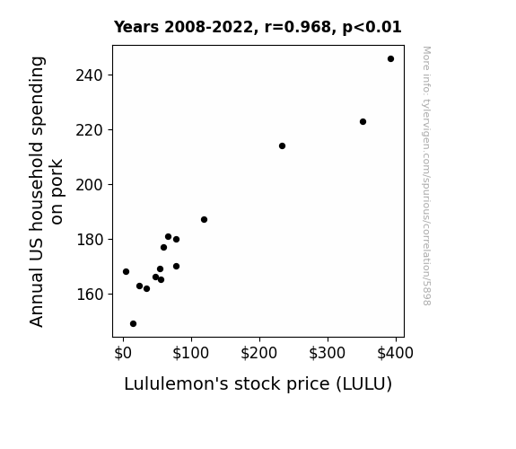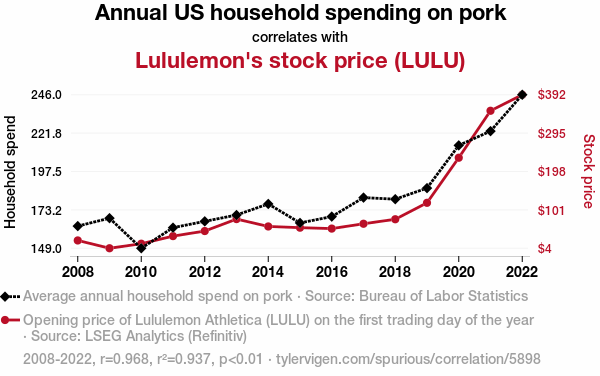 - The spurious research paper: Pigging Out: The Swine Connection between Pork Spending and Lululemon Stock Price