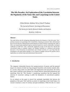 "The Alix Paradox: An Exploration of the Correlation between the Popularity of the Name Alix and Carjackings in the United States"