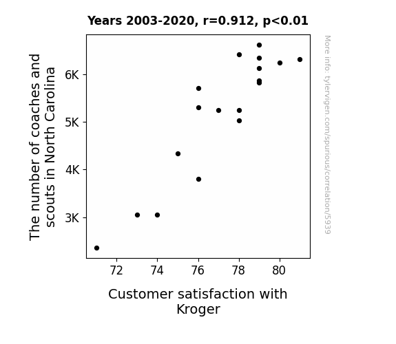 - The spurious research paper: Scouting for Satisfaction: Exploring the Impact of Coaches and Scouts in North Carolina on Customer Happiness at Kroger