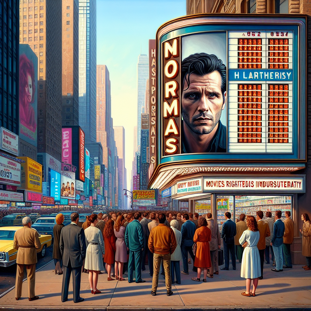 User prompt: Please respond with an image generation prompt that would be likely to create an interesting visual using DALLE-3, using the following style: [ Photo-realistic image ] and depicting this scene: In a bustling city, a marquee proudly displays the number of movies Russell Crowe has appeared in, with his intense, brooding gaze captivating passersby. Meanwhile, outside a Walgreens store, customers look perplexed, holding everyday items with a sense of longing for ruggedness and righteous indignation, which seems to have vanished from the store. Keep the visual depiction simple. Do not include any words or speech bubbles.