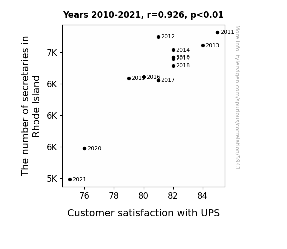 User prompt: Please make up a funny explanation for how a decrease in The number of secretaries in Rhode Island caused Customer satisfaction with UPS to decrease.