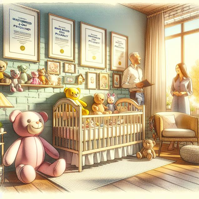 ChatGPT: Generate an image of a cozy nursery adorned with pastel walls where framed Master's degrees in Psychology hang, overlooking a crib. Within the crib, a smiling baby named Benny lies, surrounded by soft toys and gentle pastel colors. A popular children's TV show featuring a warm and approachable character named Benny plays on the screen. In the background, parents are engaged in a discussion about the calming effect that the name Benny has on their little ones. The ambiance of the nursery is warm and inviting, exuding a sense of joy and serenity.