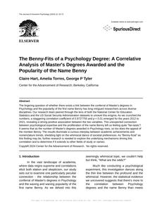 The Benny-Fits of a Psychology Degree: A Correlative Analysis of Master's Degrees Awarded and the Popularity of the Name Benny The Journal of Irreverent Psychology Jan 2024 Reminder: This paper is AI-generated. Not real! |