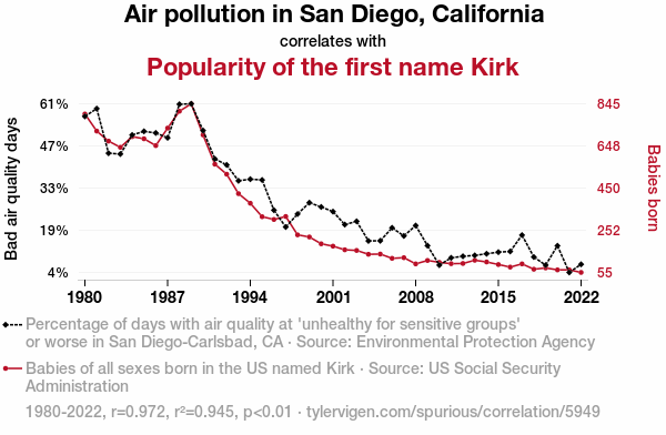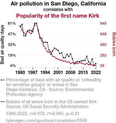 - The spurious research paper: The Smog Blog: Does Air Pollution Foggily Influence the Propensity for the Name Kirk?