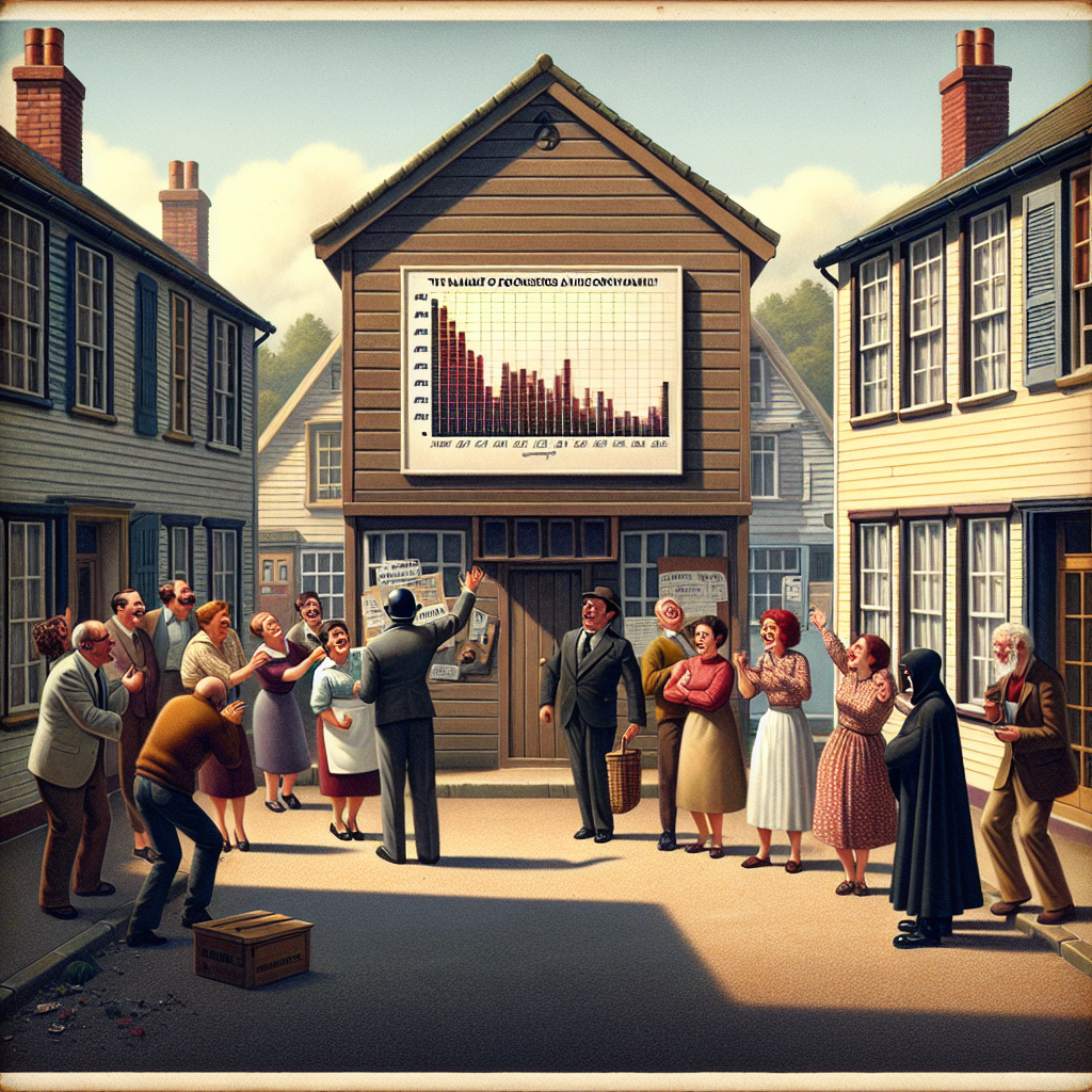 Prompt: Generate an image inspired by a Discovery magazine cover, featuring a quaint small town setting. In the background, a bulletin board displays a chart depicting the declining popularity of the name "Lamont" over the years. Near the bulletin board, a group of cheerful neighbors engage in conversation outside their well-kept homes, radiating a sense of community. Meanwhile, a dejected burglar can be seen sneaking away, visibly discouraged by the lack of "Lamont" references and the resulting decrease in burglary rates. The scene captures the subtle impact of a changing societal trend on the community's well-being. The depiction should include only scenes, people, and objects, it should not include text or speech bubbles.