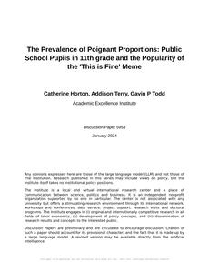 The Prevalence of Poignant Proportions: Public School Pupils in 11th grade and the Popularity of the 'This is Fine' Meme The Journal of Adolescent Meme Studies Jan 2024 Reminder: This paper is AI-generated. Not real! |
