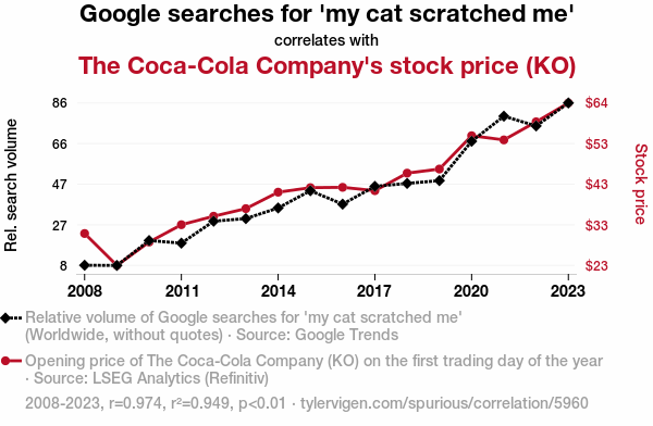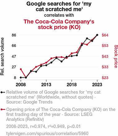 - The spurious research paper: Analyzing the Purrfect Storm: A Feline Scratches and Coca-Cola Stock Price Correlation