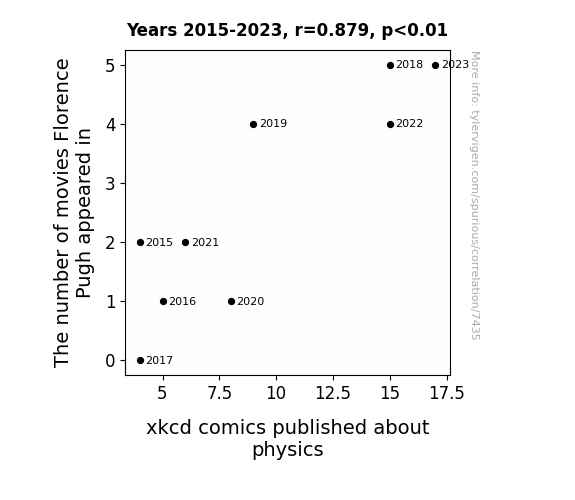 More Florence Pugh movies meant more 'Little Women' watching xkcd, thereby boosting interest in physics. It's all about that Pugh-ysics connection!Discover a new correlation