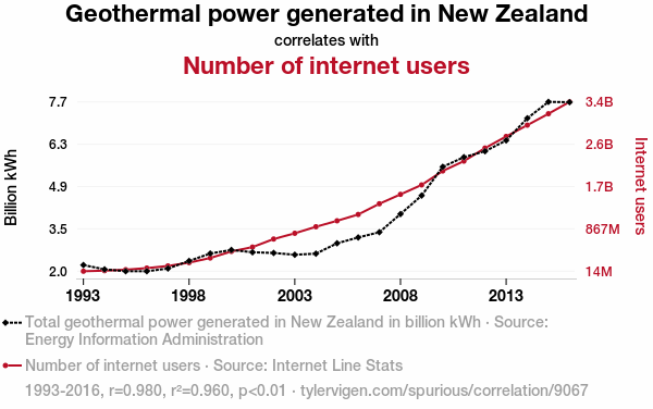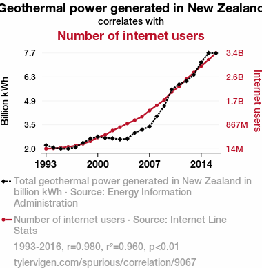 - The spurious research paper: Hot Connection: Unearthing the Relationship Between Geothermal Power in New Zealand and the Surging Population of Internet Users