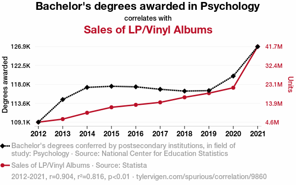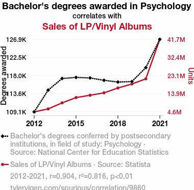- The spurious research paper: The Psychedelic Sales Effect: Exploring the Relationship between Bachelor's Degrees in Psychology and Vinyl Album Sales